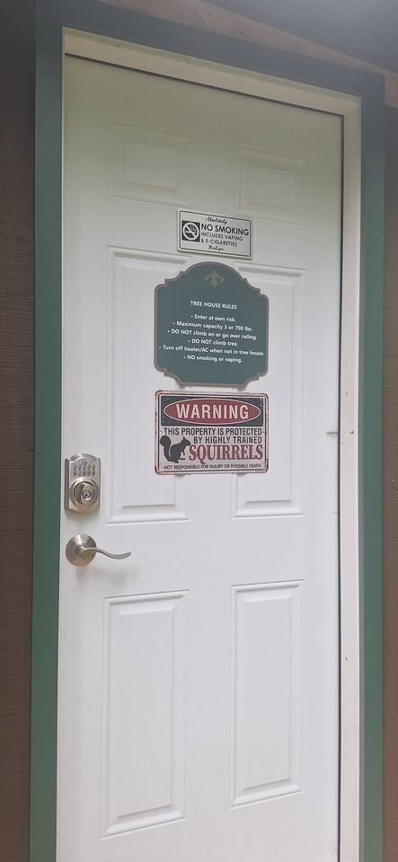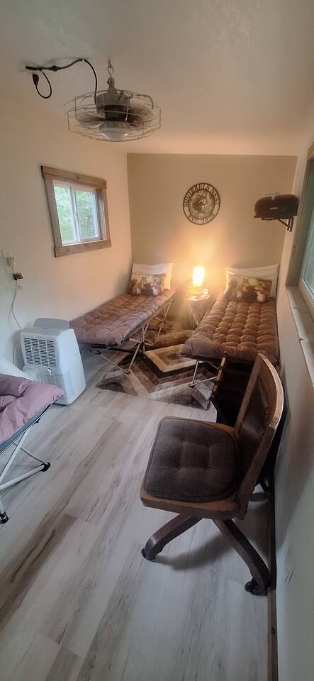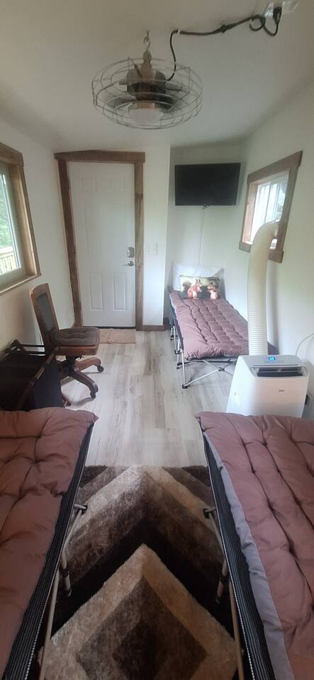 Large tree houses that has extra large cots. Has power, AC, heat, 32" TV.