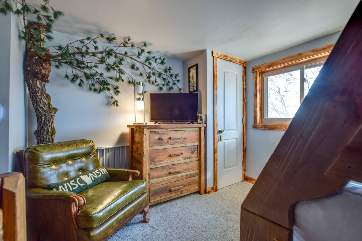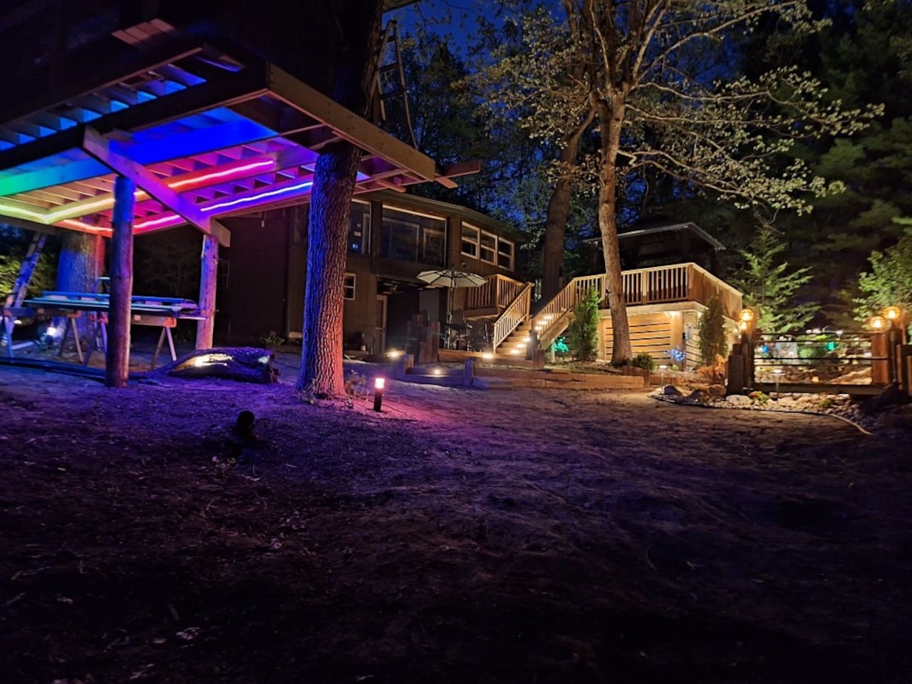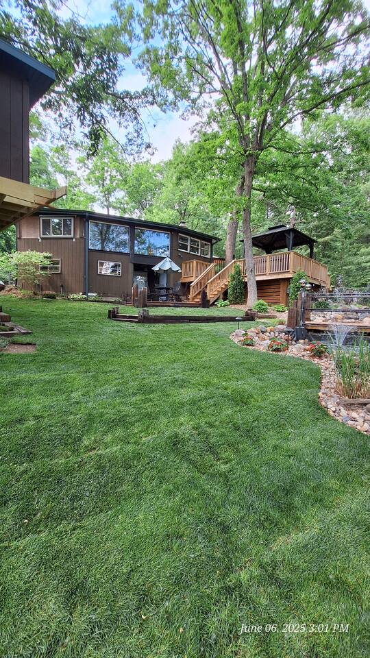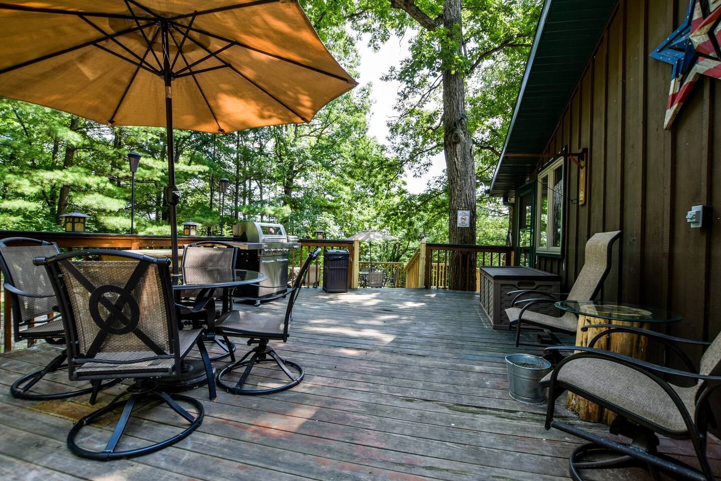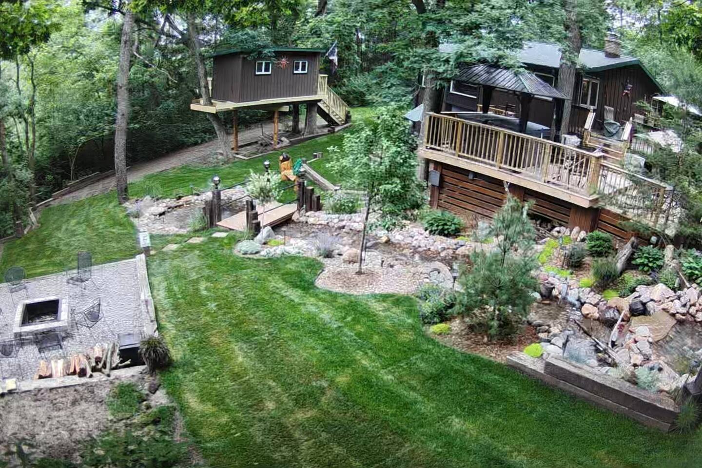 Luxury, secluded, quiet, located just minutes from the heart of WI. Dells. Spacious 4 bedrooms. Sleeps 10. Large tree house that has AC, heat, TV. Gorgeous fireplace. Large 72" theater room TV. Large upper and lower deck for outside fun. Huge firepit. NEW Hot Tub seats 7. Also newly renovated garage into game room bar. Arcade games shuffle board, darts, cards, Etc. Karaoke on the 72 inch big screen. Your family will be close to everything when you stay at this centrally-located place.