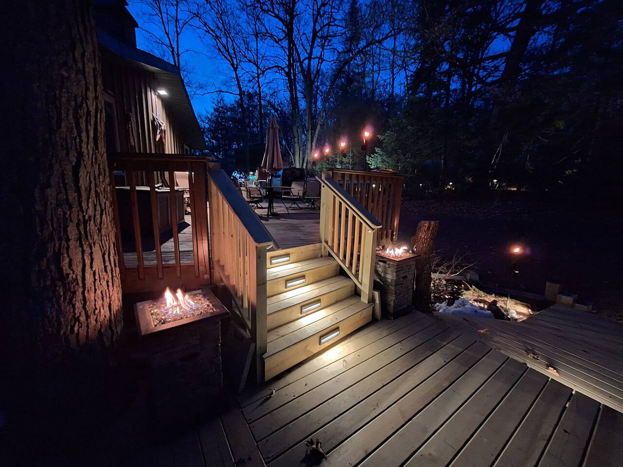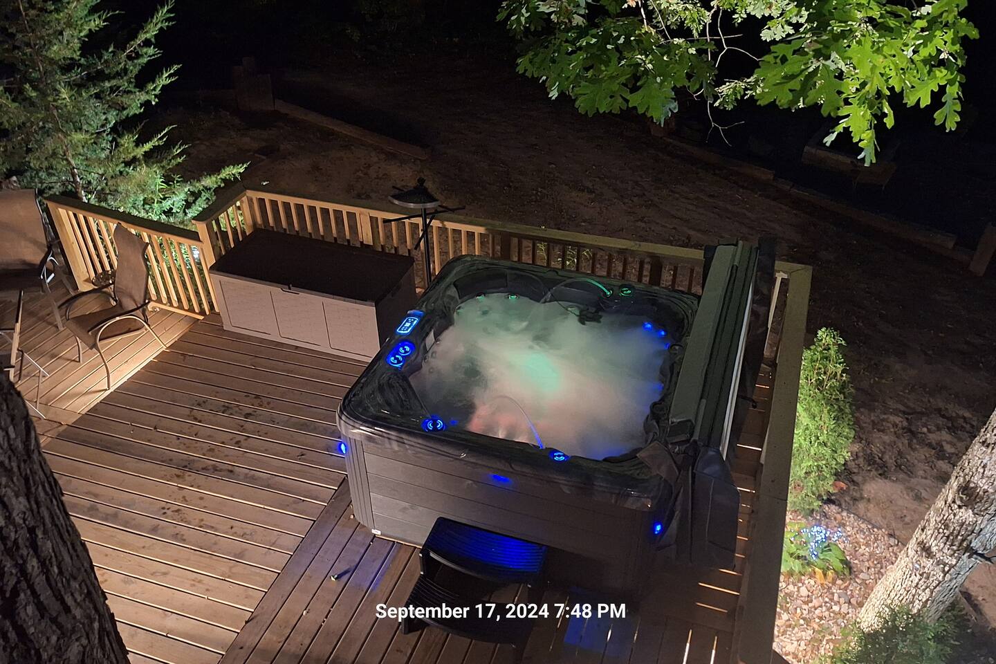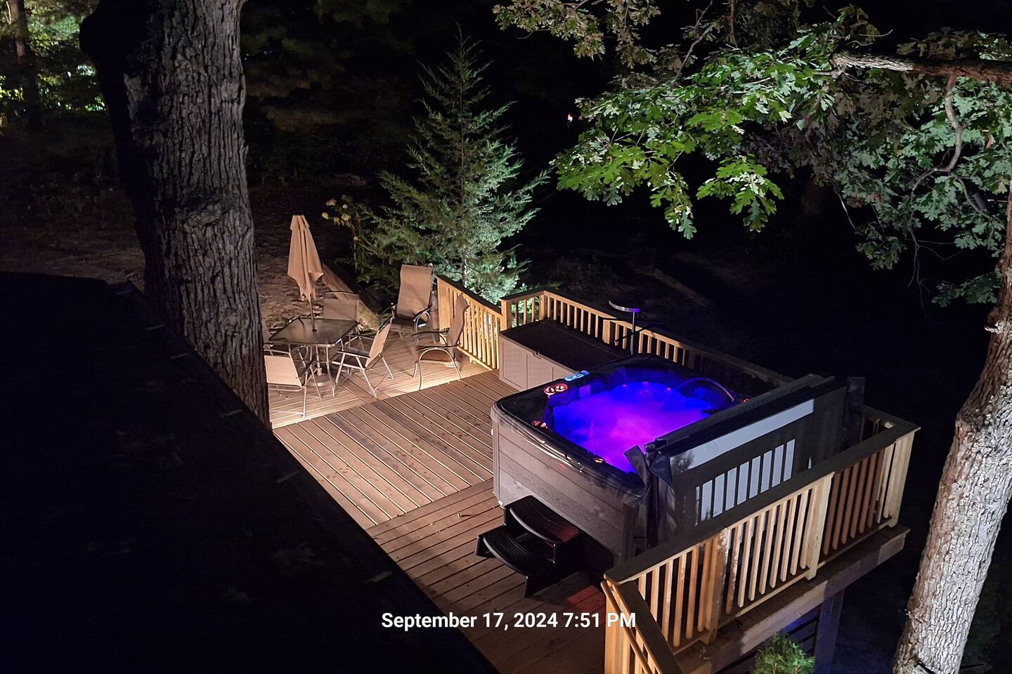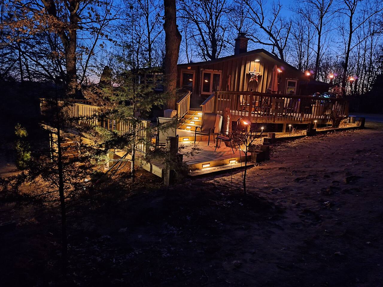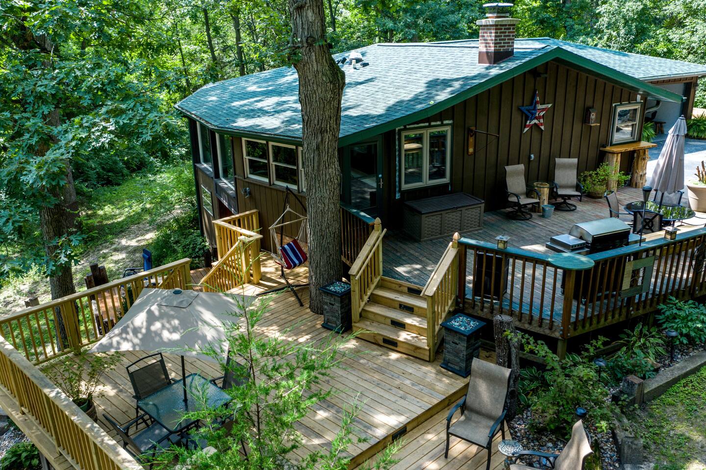 Luxury, secluded, quiet, located just minutes from the heart of WI. Dells. Spacious 4 bedrooms. Sleeps 10. Large tree house that has AC, heat, TV. Gorgeous fireplace. Large 72" theater room TV. Large upper and lower deck for outside fun. Huge firepit. NEW Hot Tub seats 7. Also newly renovated garage into game room bar. Arcade games shuffle board, darts, cards, Etc. Karaoke on the 72 inch big screen. Your family will be close to everything when you stay at this centrally-located place.