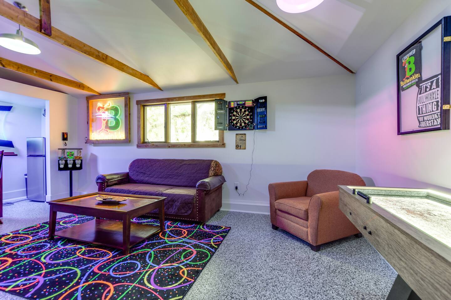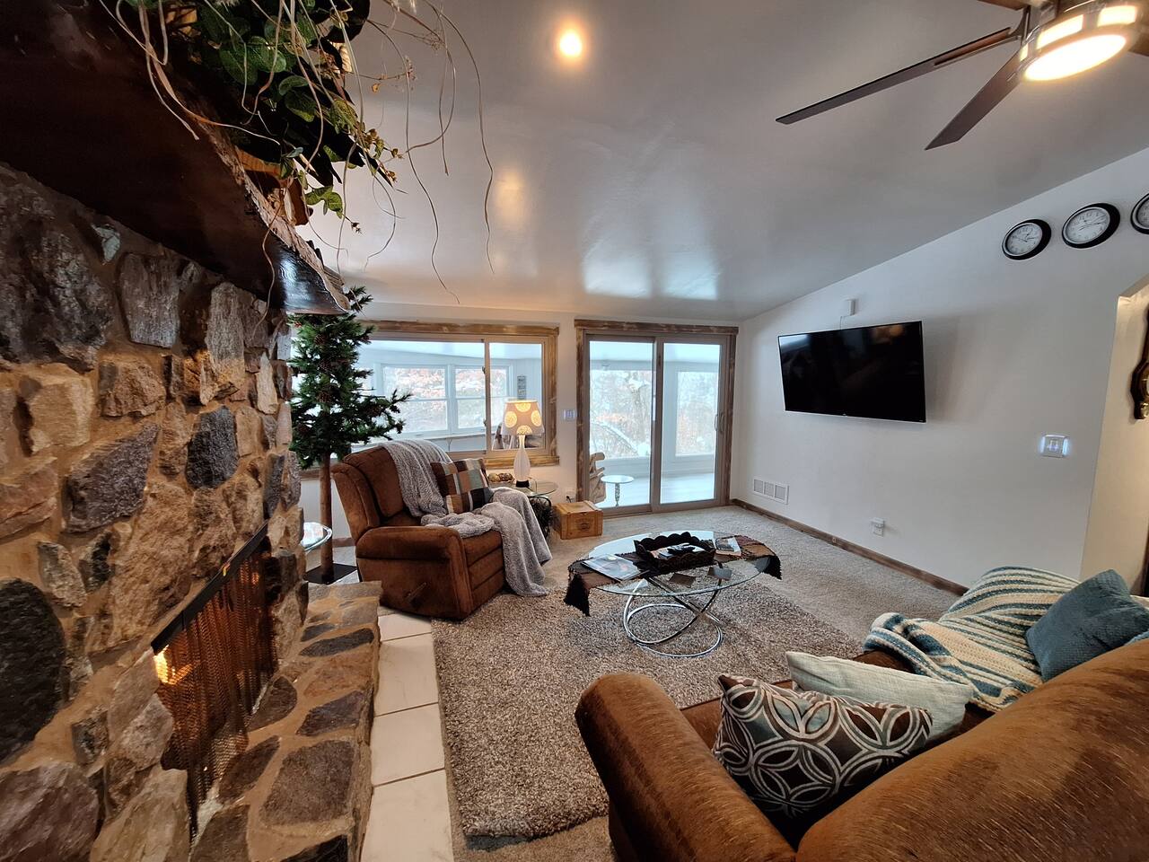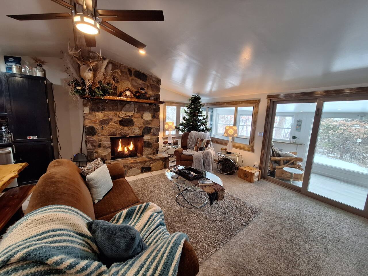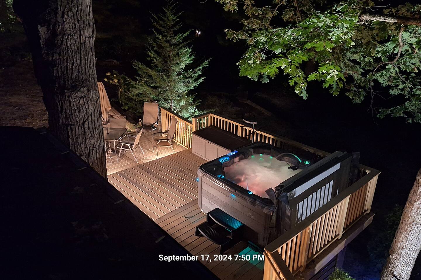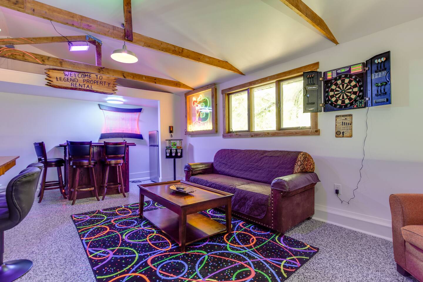 Luxury, secluded, quiet, located just minutes from the heart of WI. Dells. Spacious 4 bedrooms. Sleeps 10. Large tree house that has AC, heat, TV. Gorgeous fireplace. Large 72" theater room TV. Large upper and lower deck for outside fun. Huge firepit. NEW Hot Tub seats 7. Also newly renovated garage into game room bar. Arcade games shuffle board, darts, cards, Etc. Karaoke on the 72 inch big screen. Your family will be close to everything when you stay at this centrally-located place.