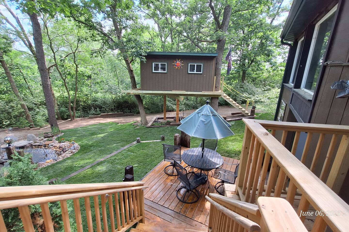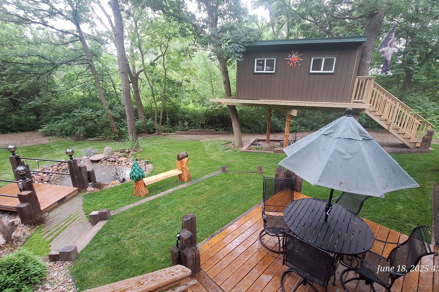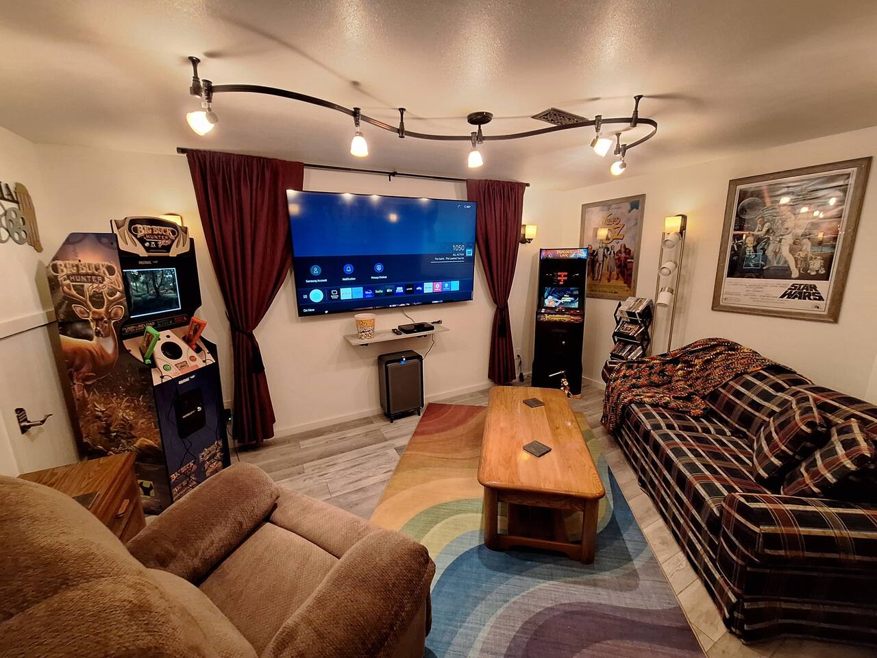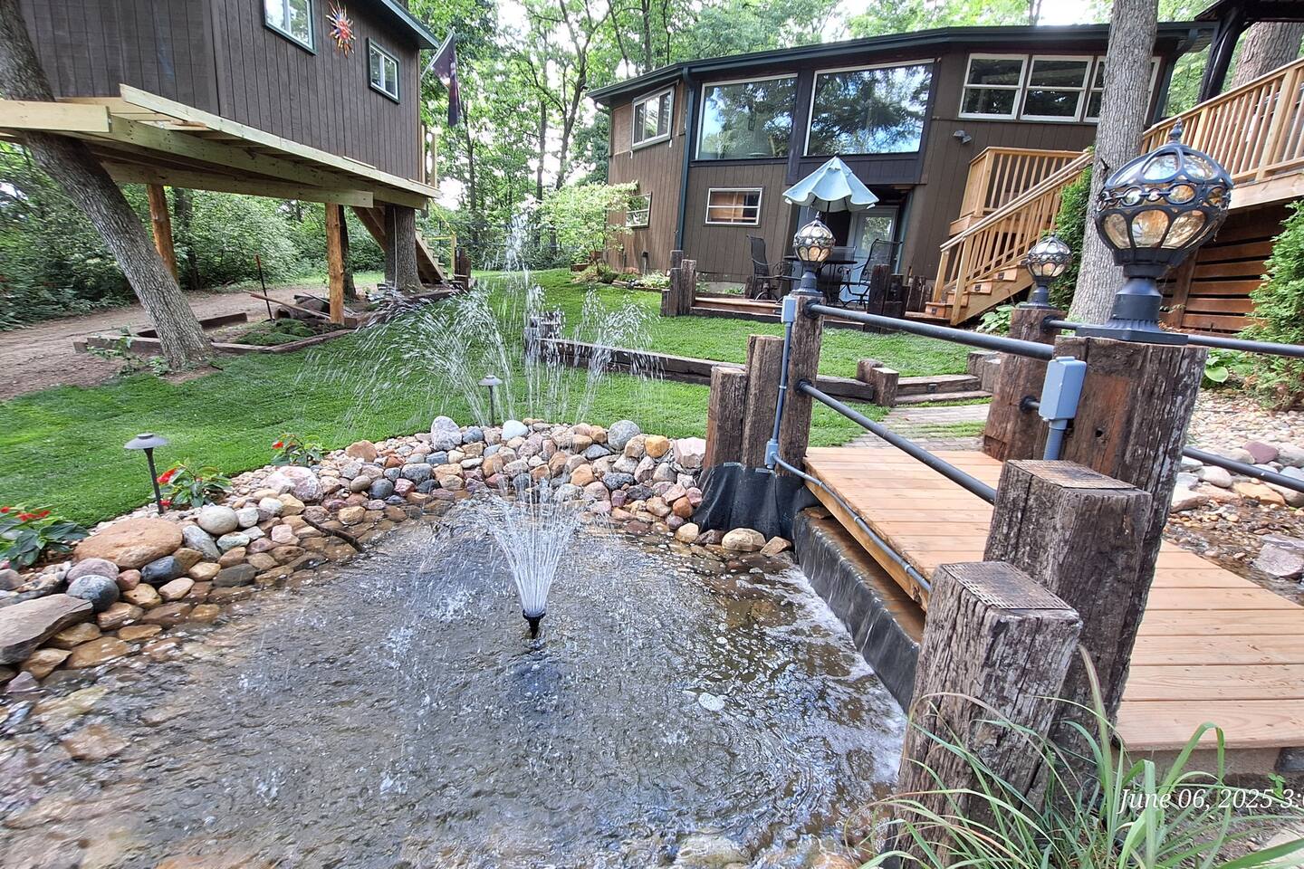 Luxury, secluded, quiet, located just minutes from the heart of WI. Dells. Spacious 4 bedrooms. Sleeps 10. Large tree house that has AC, heat, TV. Gorgeous fireplace. Large 72" theater room TV. Large upper and lower deck for outside fun. Huge firepit. NEW Hot Tub seats 7. Also newly renovated garage into game room bar. Arcade games shuffle board, darts, cards, Etc. Karaoke on the 72 inch big screen. Your family will be close to everything when you stay at this centrally-located place.