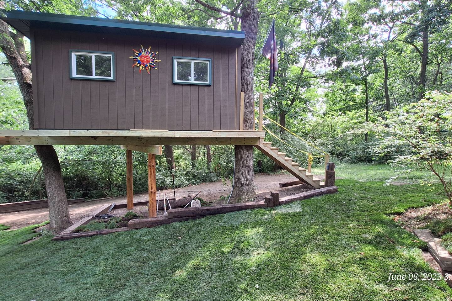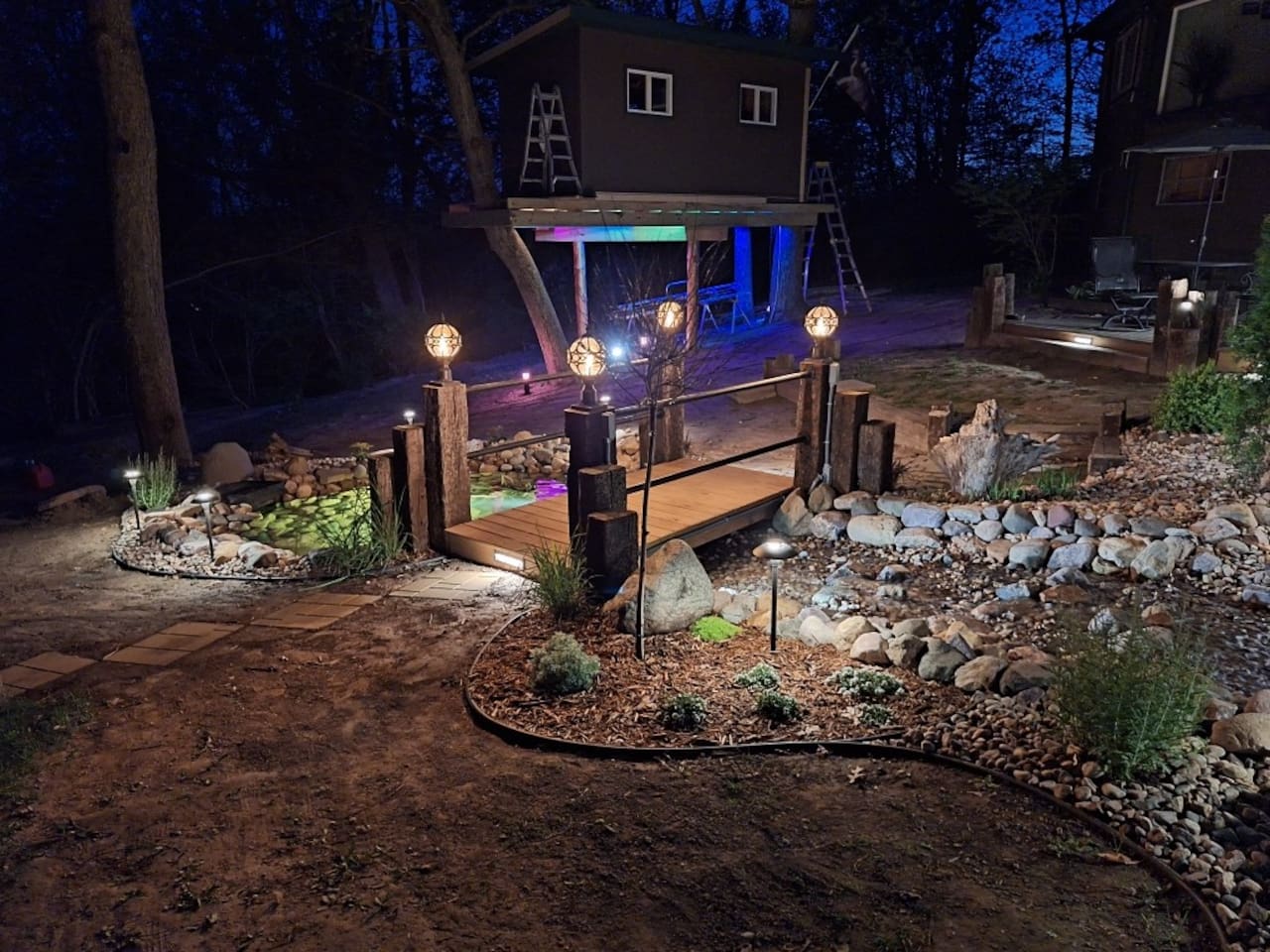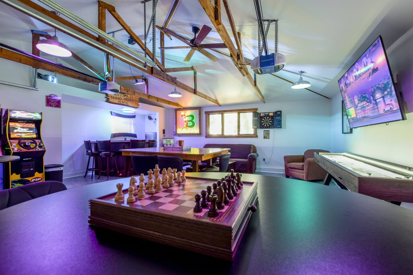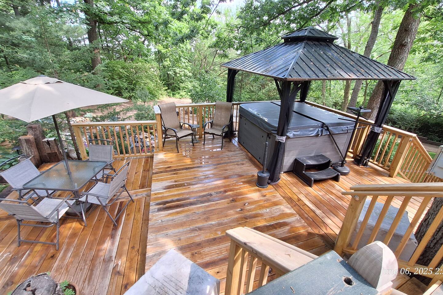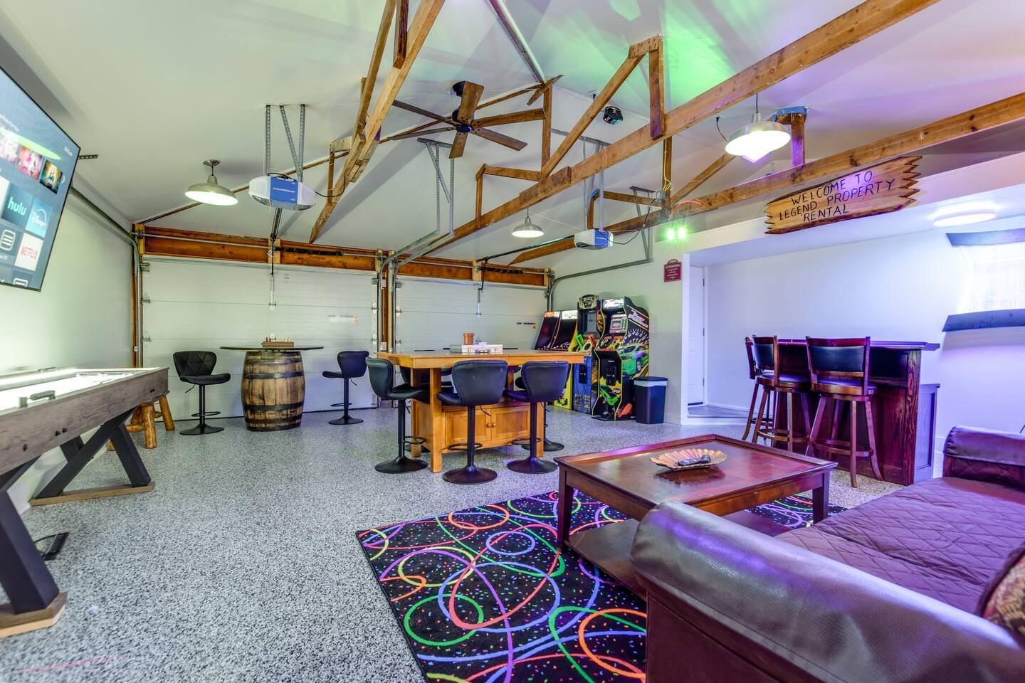Luxury, secluded, quiet, located just minutes from the heart of WI. Dells. Spacious 4 bedrooms. Sleeps 10. Large tree house that has AC, heat, TV. Gorgeous fireplace. Large 72" theater room TV. Large upper and lower deck for outside fun. Huge firepit. NEW Hot Tub seats 7. Also newly renovated garage into game room bar. Arcade games shuffle board, darts, cards, Etc. Karaoke on the 72 inch big screen. Your family will be close to everything when you stay at this centrally-located place.
